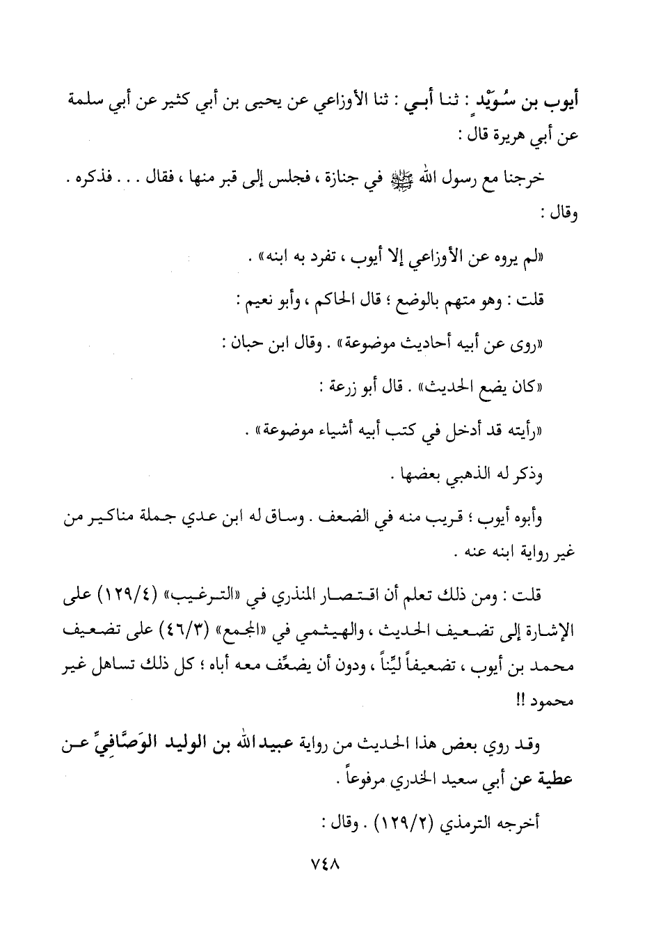 قلت: ومن ذلك تعلم أن اقتصار المنذري في "الترغيب" (4/ 129) على الإشارة إلى تضعيف الحديث، والهيثمي في "المجمع" (3/ 46) على تضعيف محمد بن أيوب، تضعيفاً ليناً، ودون أن يضعف معه أباه؛ كل ذلك تساهل غير محمود!!