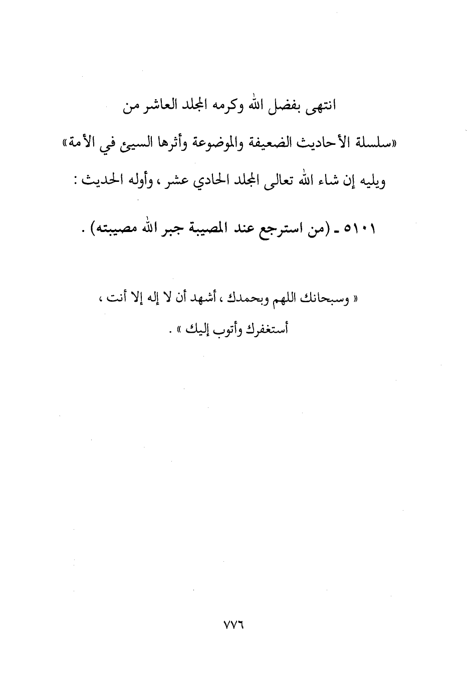انتهى بفضل الله وكرمه المجلد العاشر من " سلسلة الأحاديث الضعيفة والموضوعة وأثرها السيئ في الأمة "