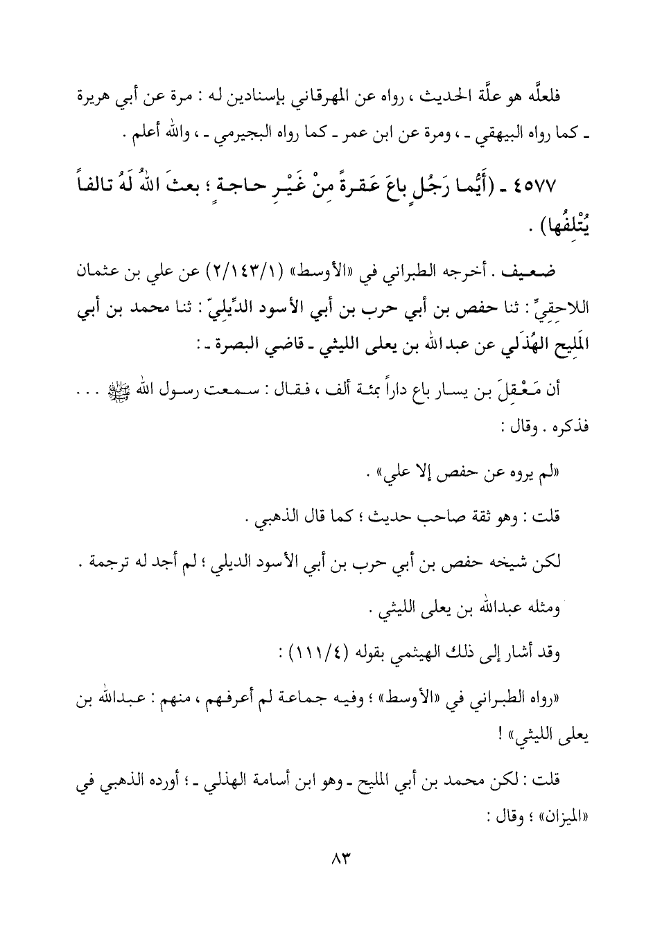 4577 - (أيما رجل باع عقرة من غير حاجة؛ بعث الله له تالفاً يتلفها) .