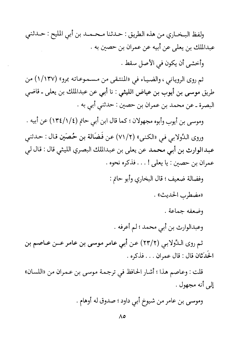 ثم روى الدولابي (2/ 23) عن أبي عامر موسى بن عامر عن عاصم بن الحدثان قال: قال عمران ... فذكره.