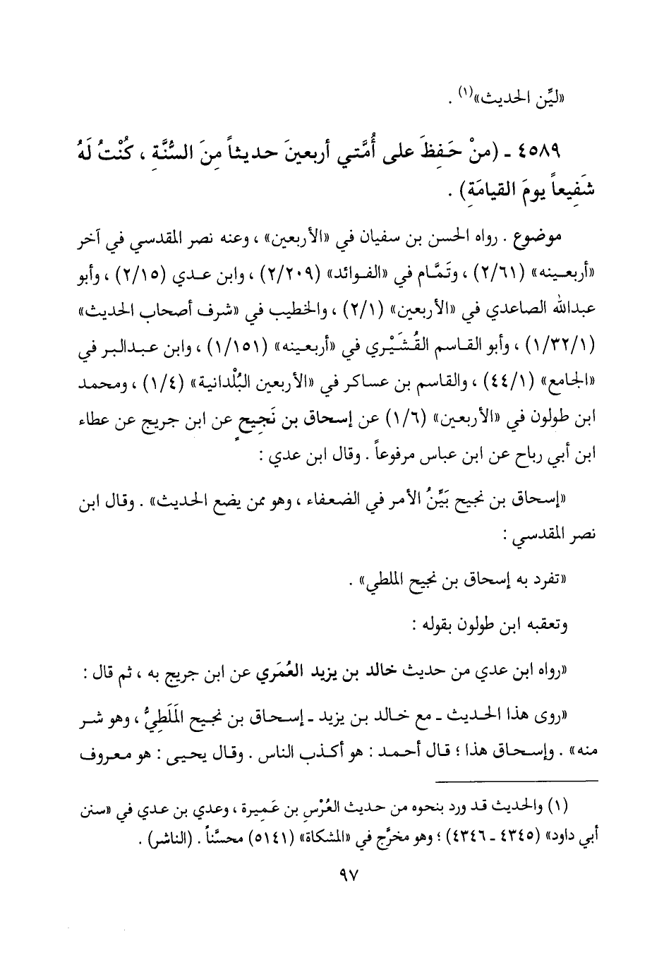 4589 - (من حفظ على أمتي أربعين حديثاً من السنة، كنت له شفيعاً يوم القيامة) .