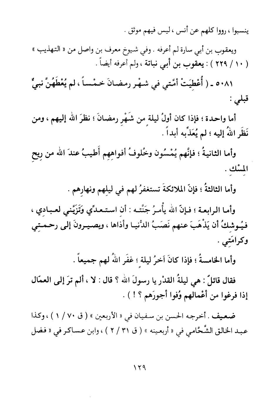 وأما الخامسة؛ فإذا كان آخر ليلة؛ غفر الله لهم جميعاً.