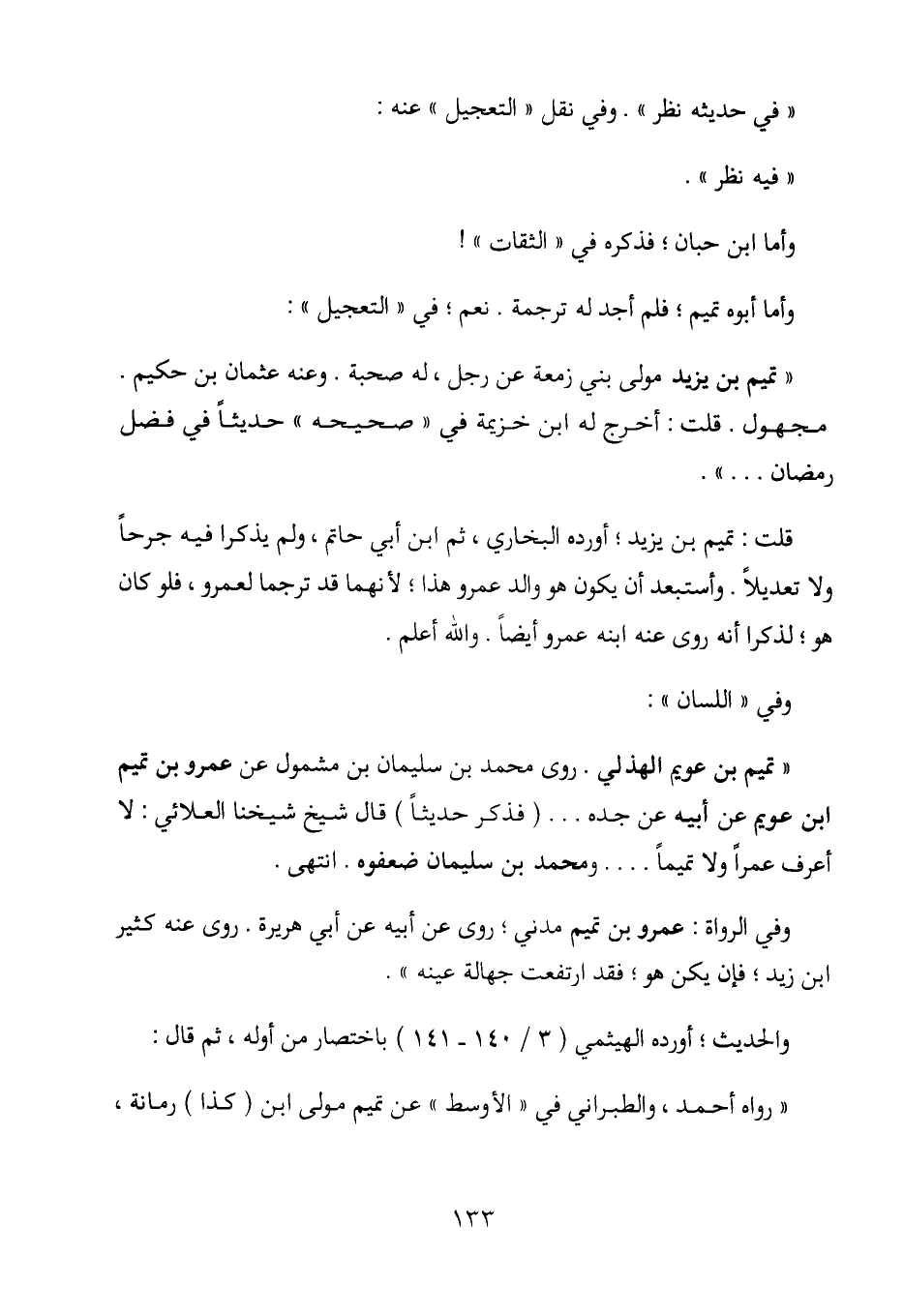 "في حديثه نظر". وفي نقل "التعجيل" عنه: