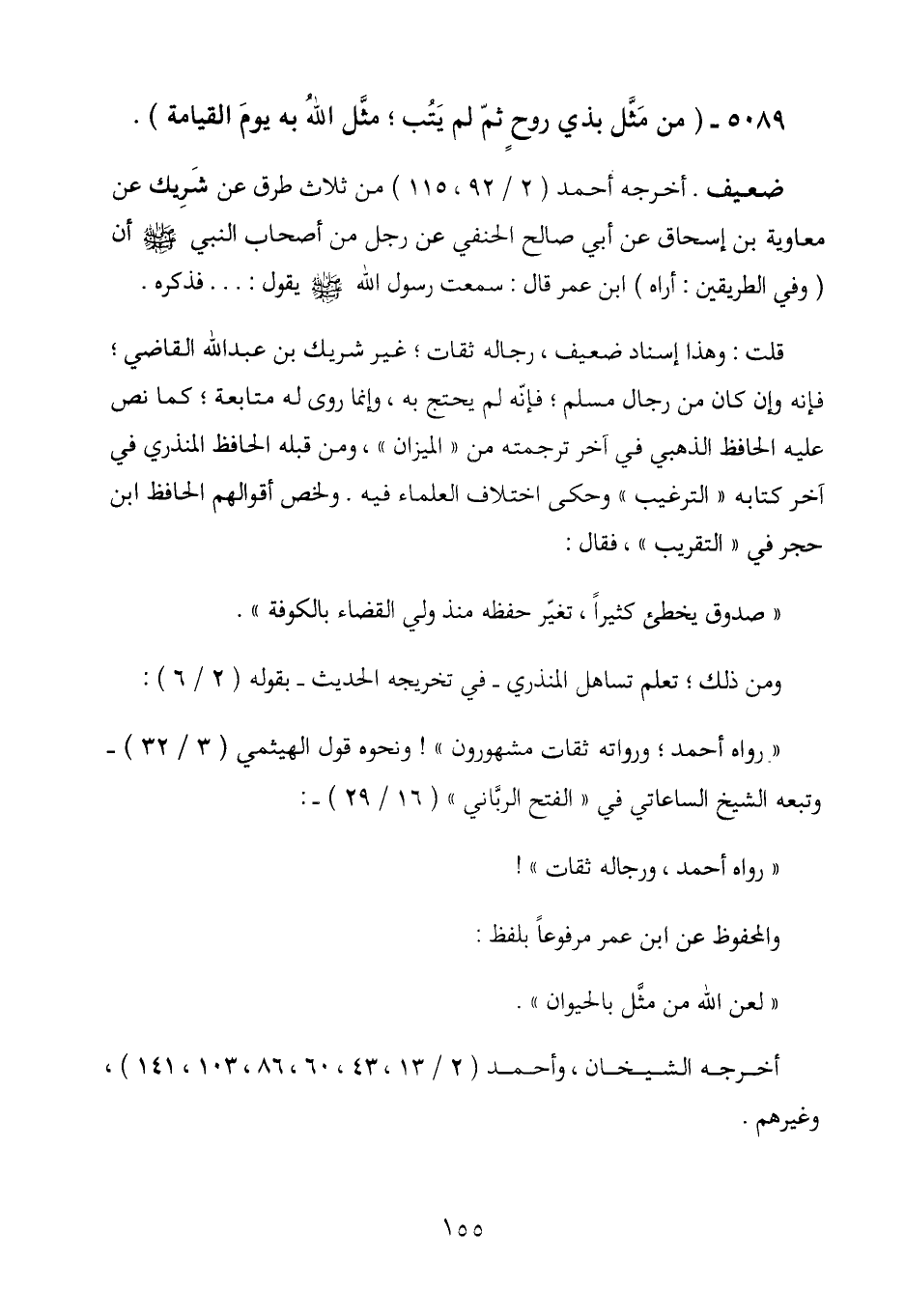 5089 - (من مثل بذي روح ثم لم يتب؛ مثل الله به يوم القيامة) .