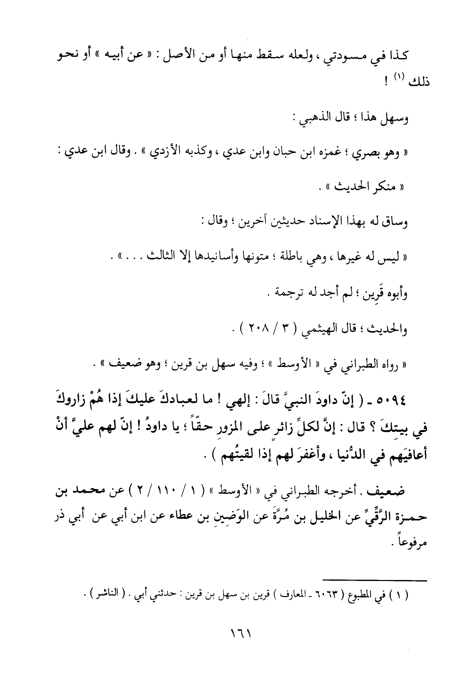 "رواه الطبراني في "الأوسط"؛ وفيه سهل بن قرين؛ وهو ضعيف".