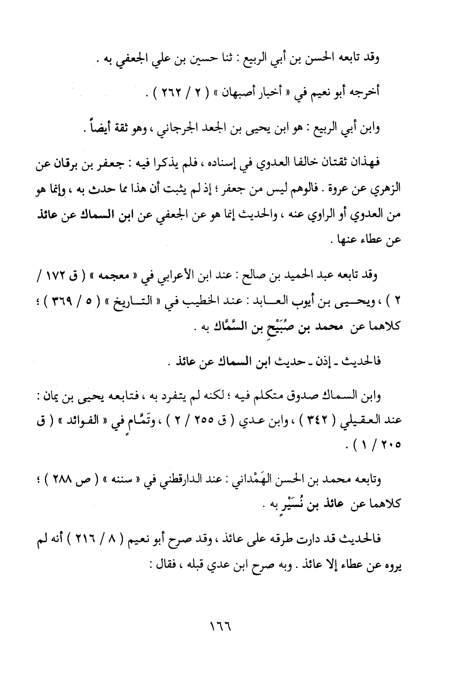 فهذان ثقتان خالفا العدوي في إسناده، فلم يذكرا فيه: جعفر بن برقان عن الزهري عن عروة. فالوهم ليس من جعفر؛ إذ لم يثبت أن هذا مما حدث به، وإنما هو من العدوي أو الراوي عنه، والحديث إنما هو عن الجعفي عن ابن السماك عن عائذ عن عطاء عنها.