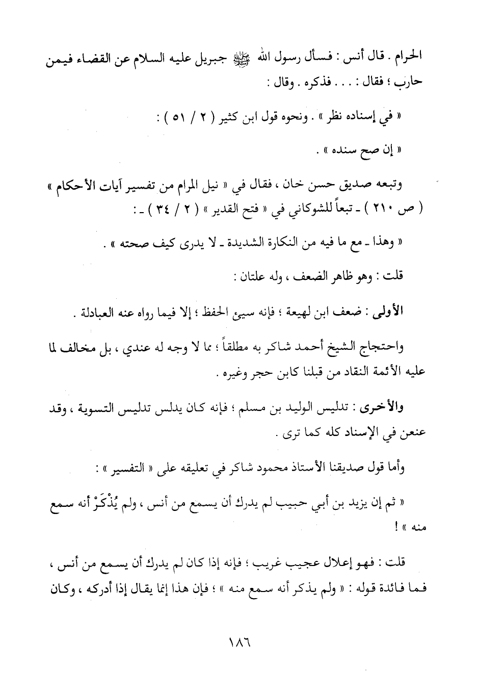 وأما قول صديقنا الأستاذ محمود شاكر في تعليقه على "التفسير":