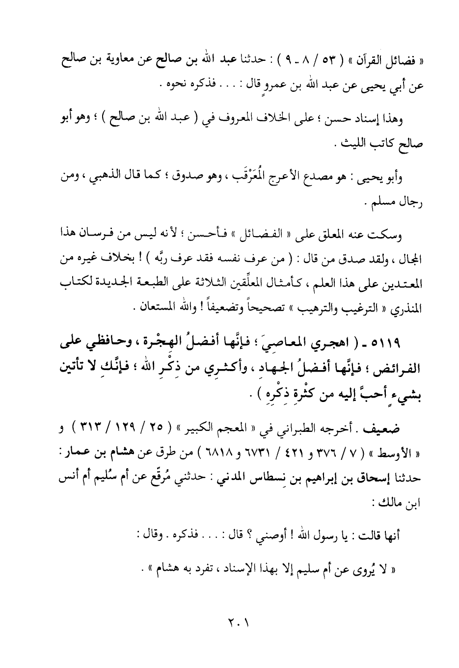 وسكت عنه المعلق على "الفضائل" فأحسن؛ لأنه ليس من فرسان هذا المجال، ولقد صدق من قال: (من عرف نفسه عرف ربه) ! بخلاف غيره من المعتدين على هذا العلم، كأمثال المعلقين الثلاثة على الطبعة الجديدة لكتاب المنذري "الترغيب والترهيب" تصحيحاً وتضعيفاً! والله المستعان.