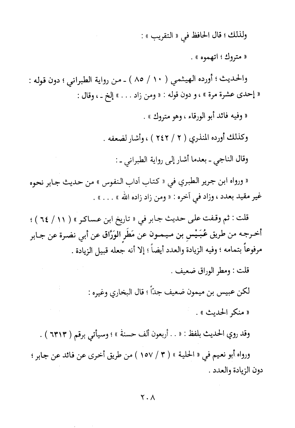 "ورواه ابن جرير الطبري في "كتاب آداب النفوس" من حديث جابر نحوه غير مقيد بعدد، وزاد في آخره: "ومن زاد زاده الله" ... ".