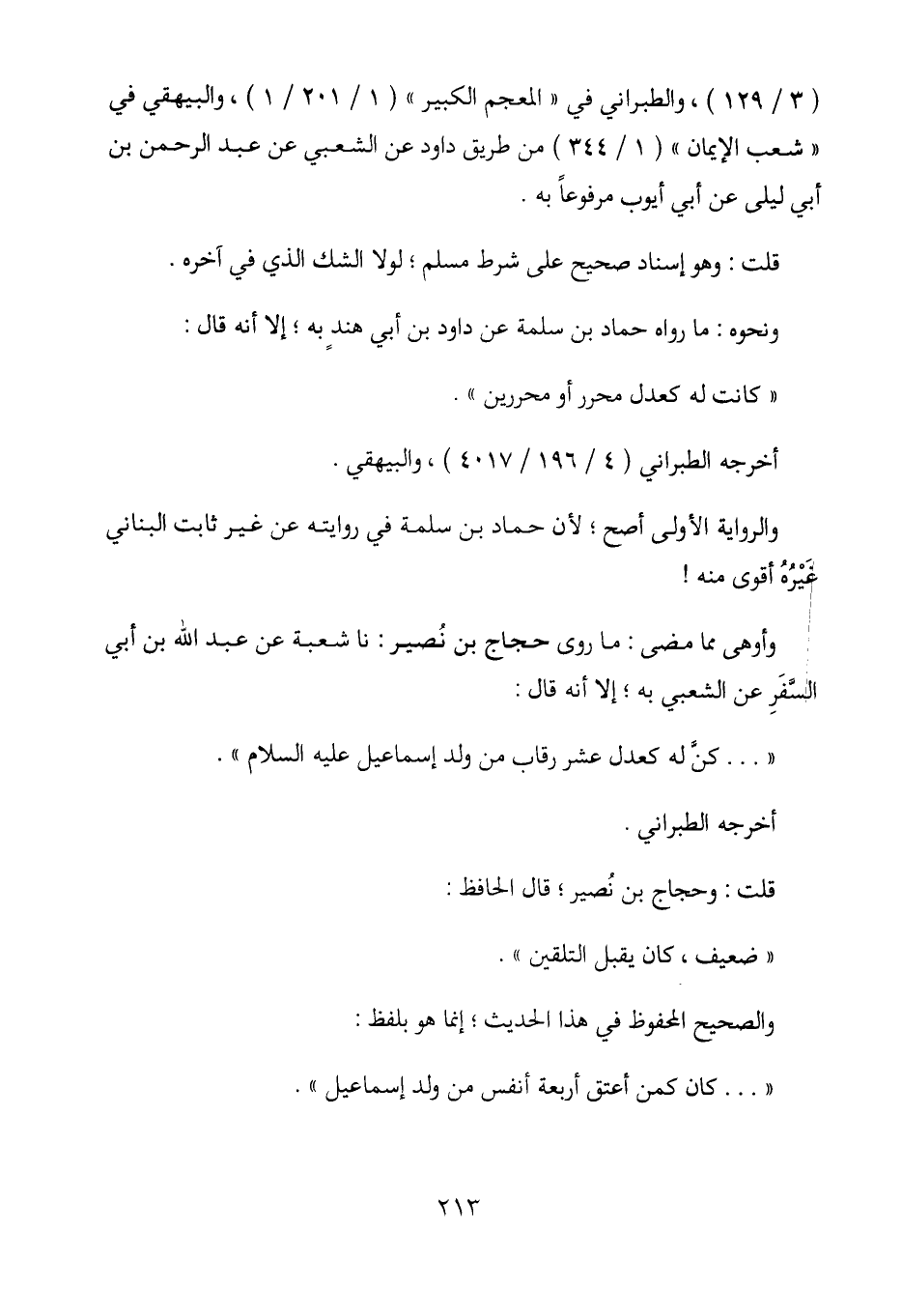 " ... كن له كعدل عشر رقاب من ولد إسماعيل عليه السلام".