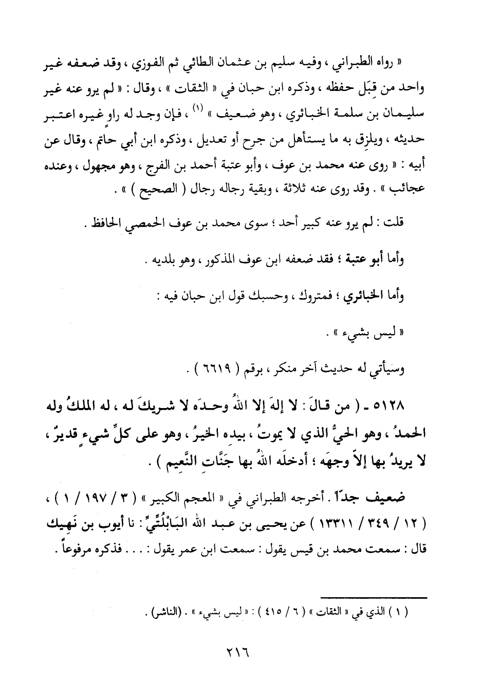 (1) الذي في " الثقات " (6 / 415) : " ليس بشيء ". (الناشر)