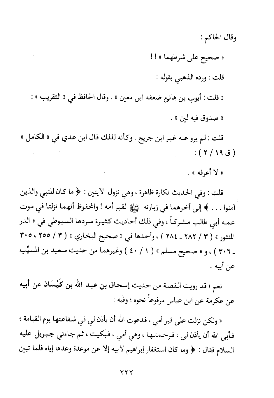 قلت: وفي الحديث نكارة ظاهرة، وهي نزول الآيتين: (ما كان للنبي والذين آمنوا ... ) إلى آخرهما في زيارته - صلى الله عليه وسلم - لقبر أمه! والمحفوظ أنهما نزلتا في موت عمه أبي طالب مشركاً، وفي ذلك أحاديث كثيرة سردها السيوطي في "الدر المنثور" (3/ 282-284) ، وأحدها في "صحيح البخاري" (3/ 255،305-306) ، و "صحيح مسلم" (1/ 40) وغيرهما من حديث سعيد بن المسيب عن أبيه.