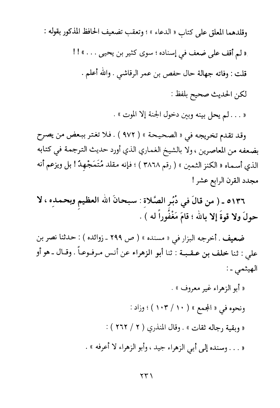 5136 - (من قال في دبر الصلاة: سبحان الله العظيم وبحمده، لا حول ولا قوة إلا بالله؛ قام مغفوراً له) .