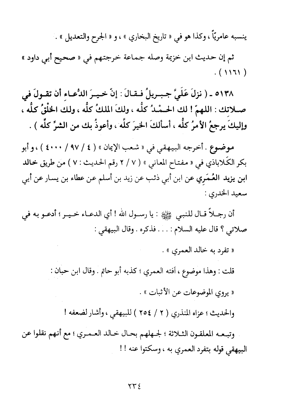 وتبعه المعلقون الثلاثة؛ لجهلهم بحال خالد العمري؛ مع أنهم قلوا عن البيهقي قوله بتفرد العمري به، وسكتوا عنه!!