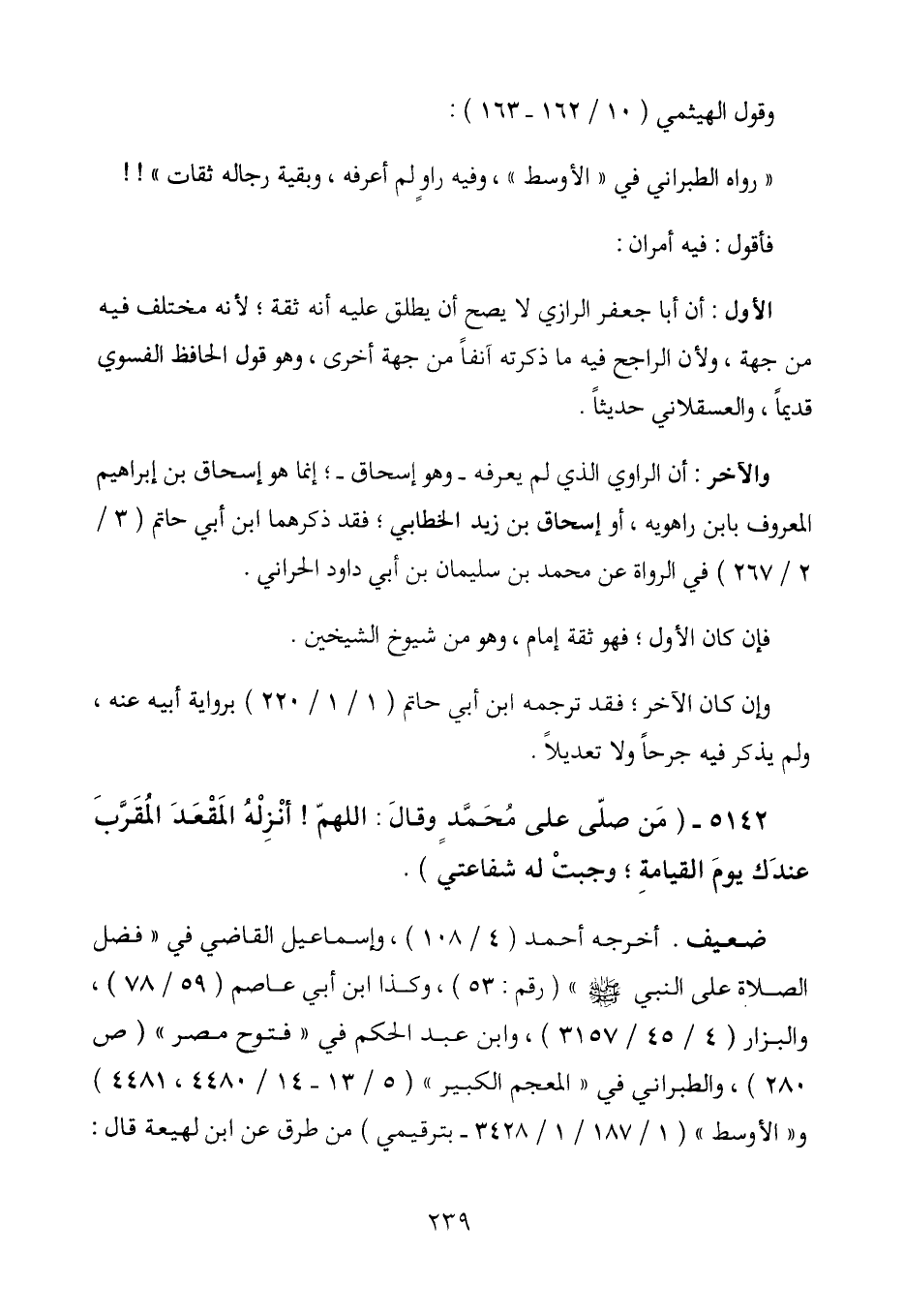 5142 - (من صلى على محمد وقال: اللهم! أنزله المقعد المقرب عندك يوم القيامة؛ وجبت له شفاعتي) .