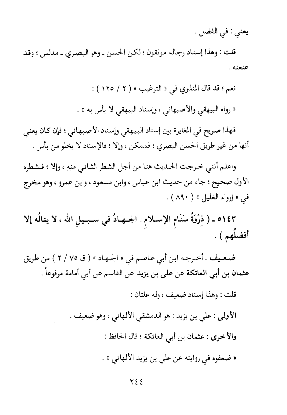 5143 - (ذروة سنام الإسلام: الجهاد في سبيل الله، لا يناله إلا أفضلهم) .