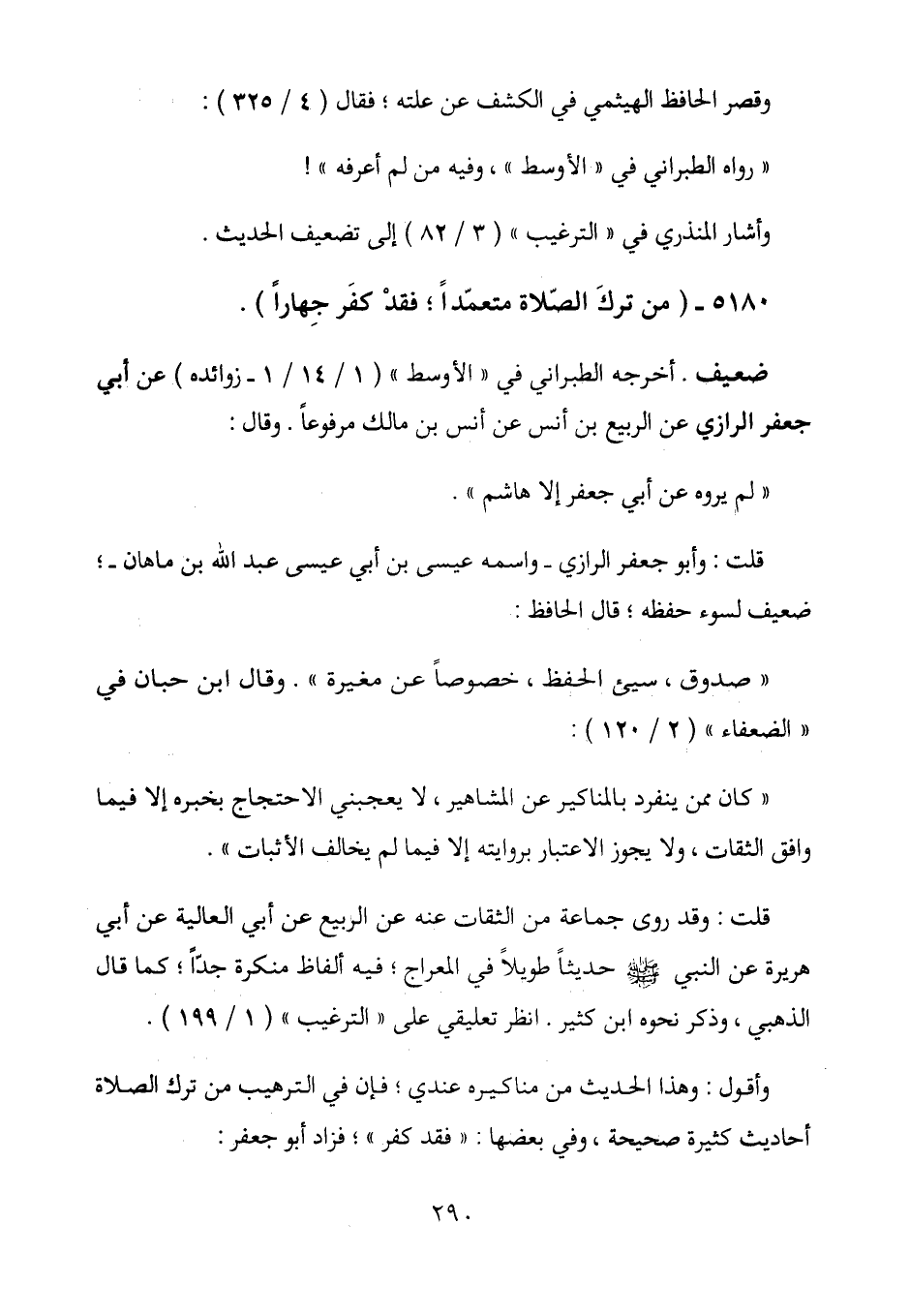 5180 - (من ترك الصلاة متعمداً؛ فقد كفر جهاراً) .