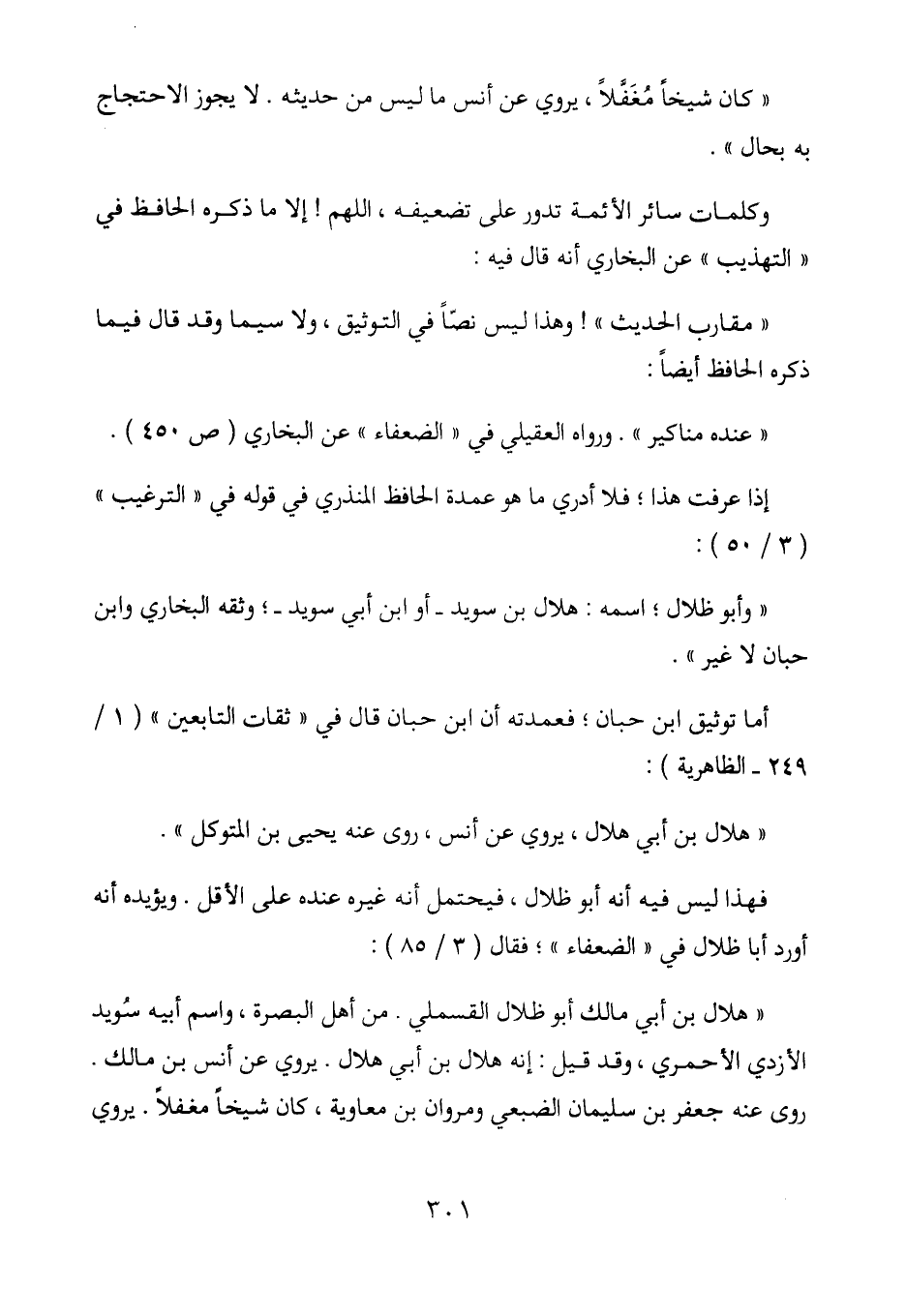 "وأبو ظلال؛ اسمه: هلال بن سويد - أو ابن أبي سويد -؛ وثقه البخاري وابن حبان لا غير".