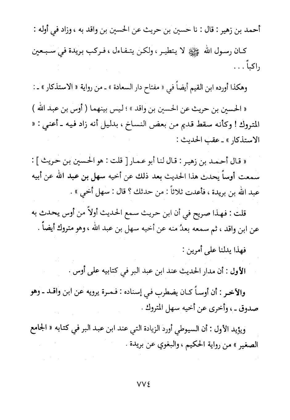 والآخر: أن أوساً كان يضطرب في إسناده: فمرة يرويه عن ابن واقد - وهو صدوق -، وأخرى عن أخيه سهل المتروك.