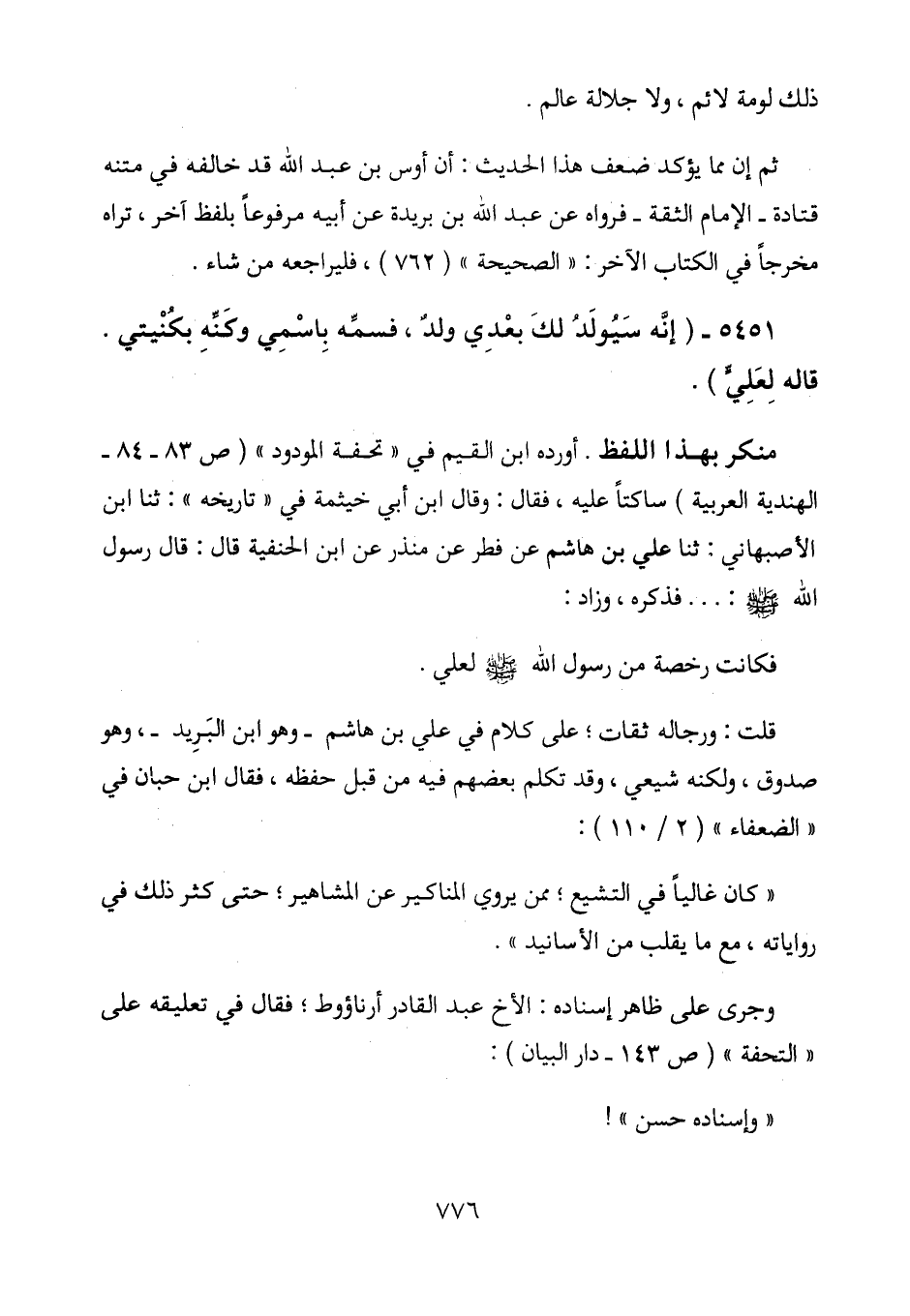 5451 - (إنه سيولد لك بعدي ولد، فسمه باسمي وكنه بكنيتي. قاله لعلي) .