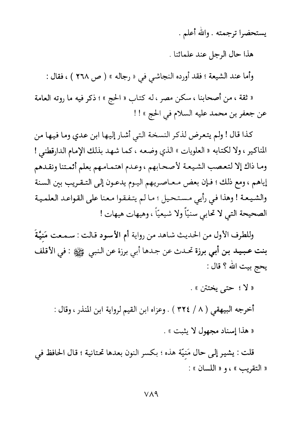 كذا قال! ولم يتعرض لذكر النسخة التي أشار إليها ابن عدي وما فيها من المناكير، ولا لكتابه "العلويات" الذي وضعه، كما شهد بذلك الإمام الدارقطني! وما ذاك إلا لتعصب الشيعة لأصحابهم، وعدم اهتمامهم بعلم أئمتنا ونقدهم إياهم، ومع ذلك؛ فإن بعض معاصريهم اليوم يدعون إلى التقريب بين السنة والشيعة! وهذا في رأيي مستحيل؛ ما لم يتفقوا معنا على القواعد العلمية الصحيحة التي لا تحابي سنياً ولا شيعياً، وهيهات هيهات!