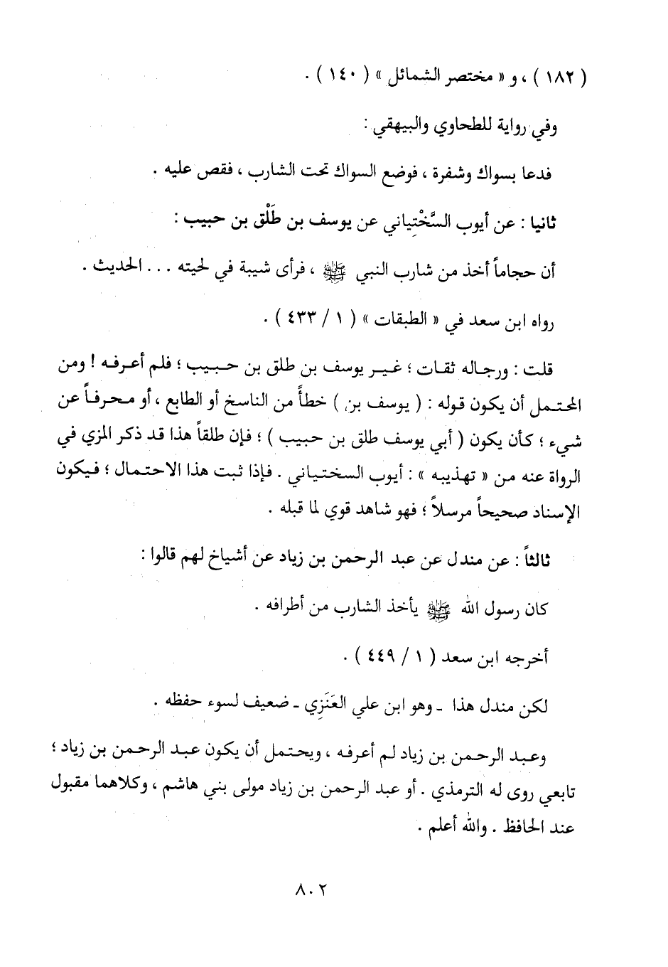 قلت: ورجاله ثقات؛ غير يوسف بن طلق بن حبيب؛ فلم أعرفه! ومن المحتمل أن يكون قوله: (يوسف بن) خطأ من الناسخ أو الطابع، أو محرفاً عن شيء؛ كأن يكون (أبي يوسف طلق بن حبيب) ؛ فإن طلقاً هذا قد ذكر المزي في الرواة عنه من "تهذيبه": أيوب السختياني. فإذا ثبت هذا الاحتمال؛ فيكون الإسناد صحيحاً مرسلاً؛ فهو شاهد قوي لما قبله.