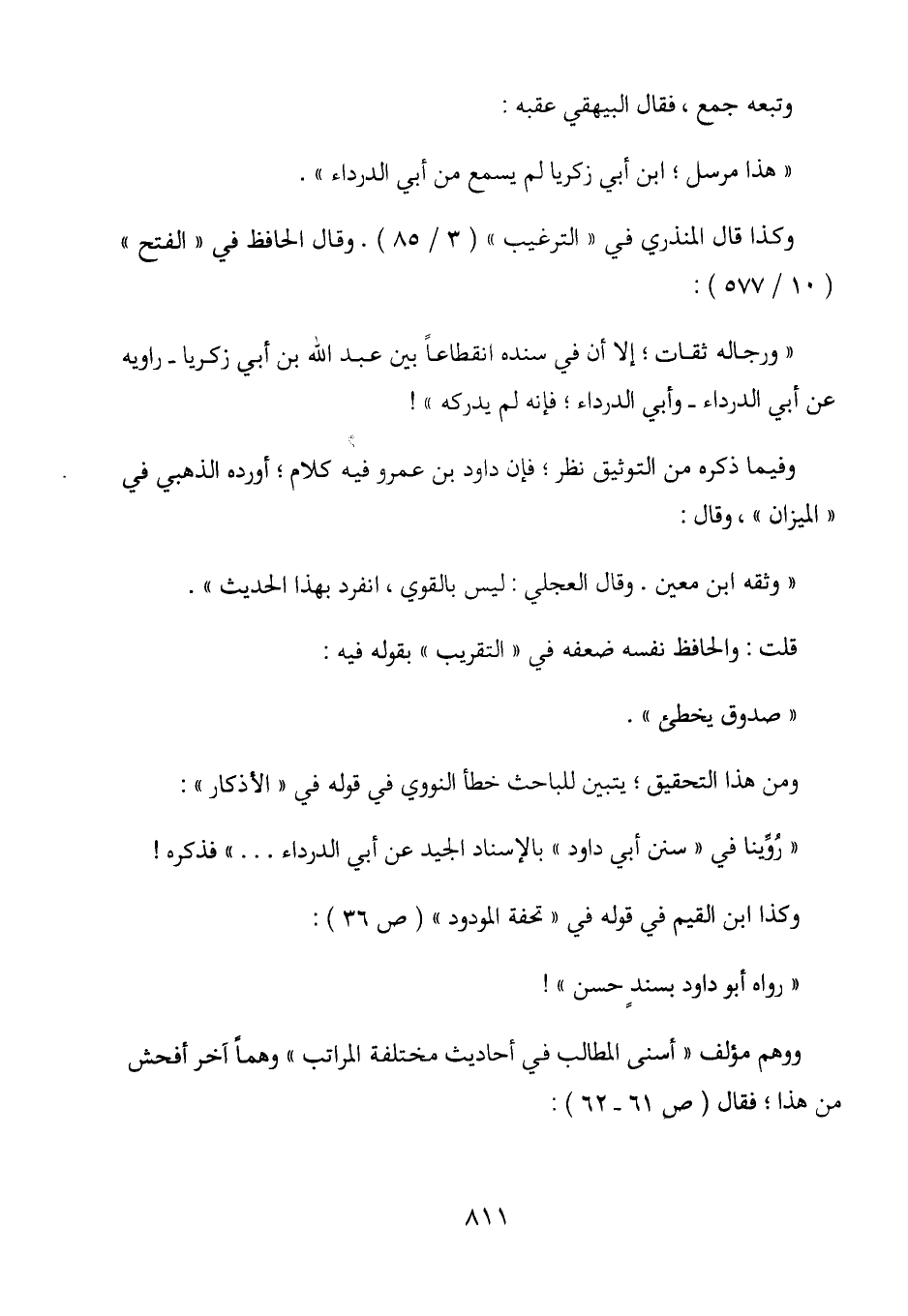 "ورجاله ثقات؛ إلا أن في سنده انقطاعاً بين عبد الله بن أبي زكريا - راويه عن أبي الدرداء - وأبي الدرداء؛ فإنه لم يدركه"!