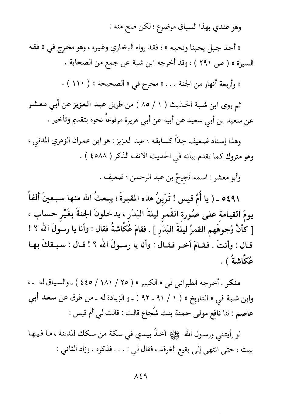 5491 - (يا أم قيس! ترين هذه المقبرة؛ يبعث الله منها سبعين ألفاً يوم القيامة على صورة القمر ليلة البدر، يدخلون الجنة بغير حساب، [كأن وجوههم القمر ليلة البدر] . فقام عكاشة فقال: وأنا يا رسول الله؟! قال: وأنت. فقام آخر فقال: وأنا يا رسول الله؟! قال: سبقك بها عكاشة) .