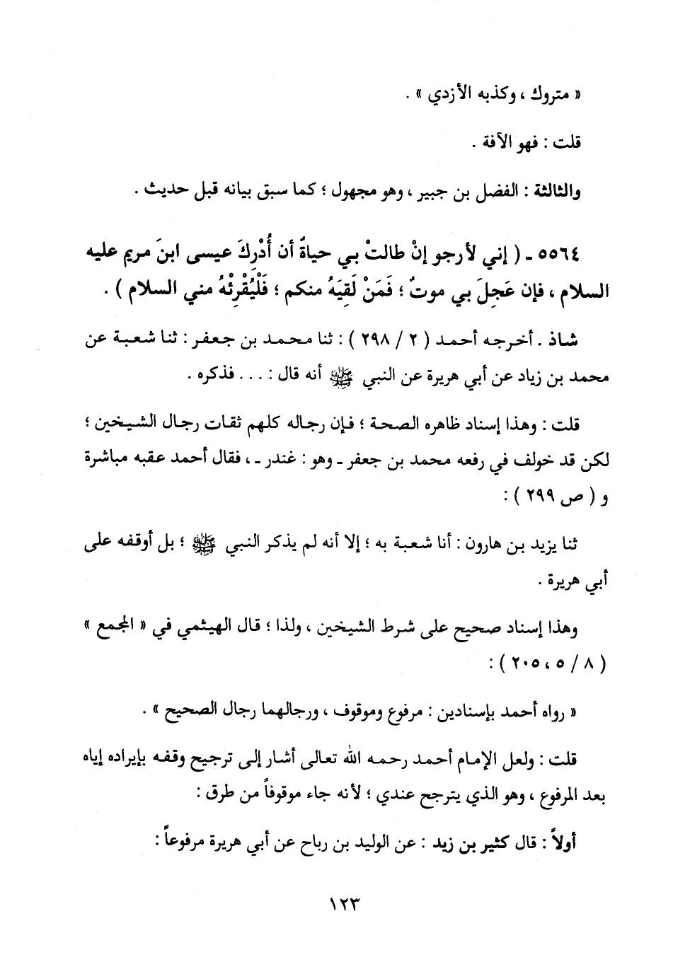 قلت: وهذا إسناد ظاهره الصحة؛ فإن رجاله كلهم ثقات رجال الشيخين؛ لكن قد خولف في رفعه محمد بن جعفر - وهو: غندر -، فقال أحمد عقبه مباشرة و (ص 299) :