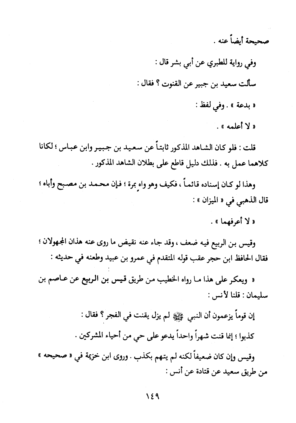 صحيحة أيضا عنه. وفي رواية للطبري عن أبي بشر قال: سألت سعيد بن جبير عن القنوت؟ فقال: