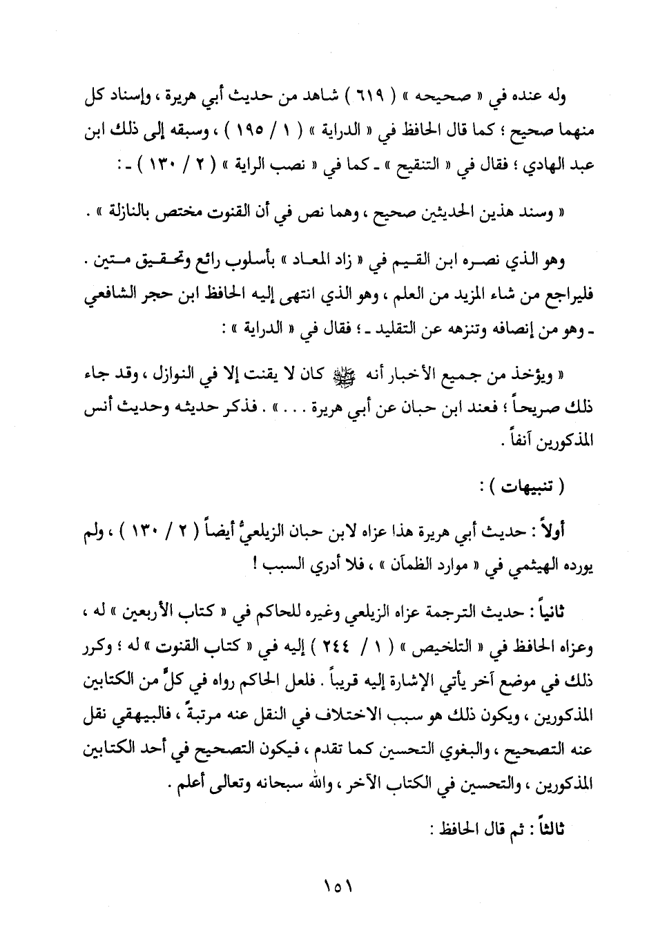 وهو الذي نصره ابن القيم في (زاد المعاد) بأسلوب رائع وتحقيق متين. فليراجع من شاء المزيد من العلم، وهو الذي انتهى إليه الحافظ ابن حجر الشافعي - وهو من إنصافه وتنزيهه عن التقليد -؛ فقال في (الراية) :