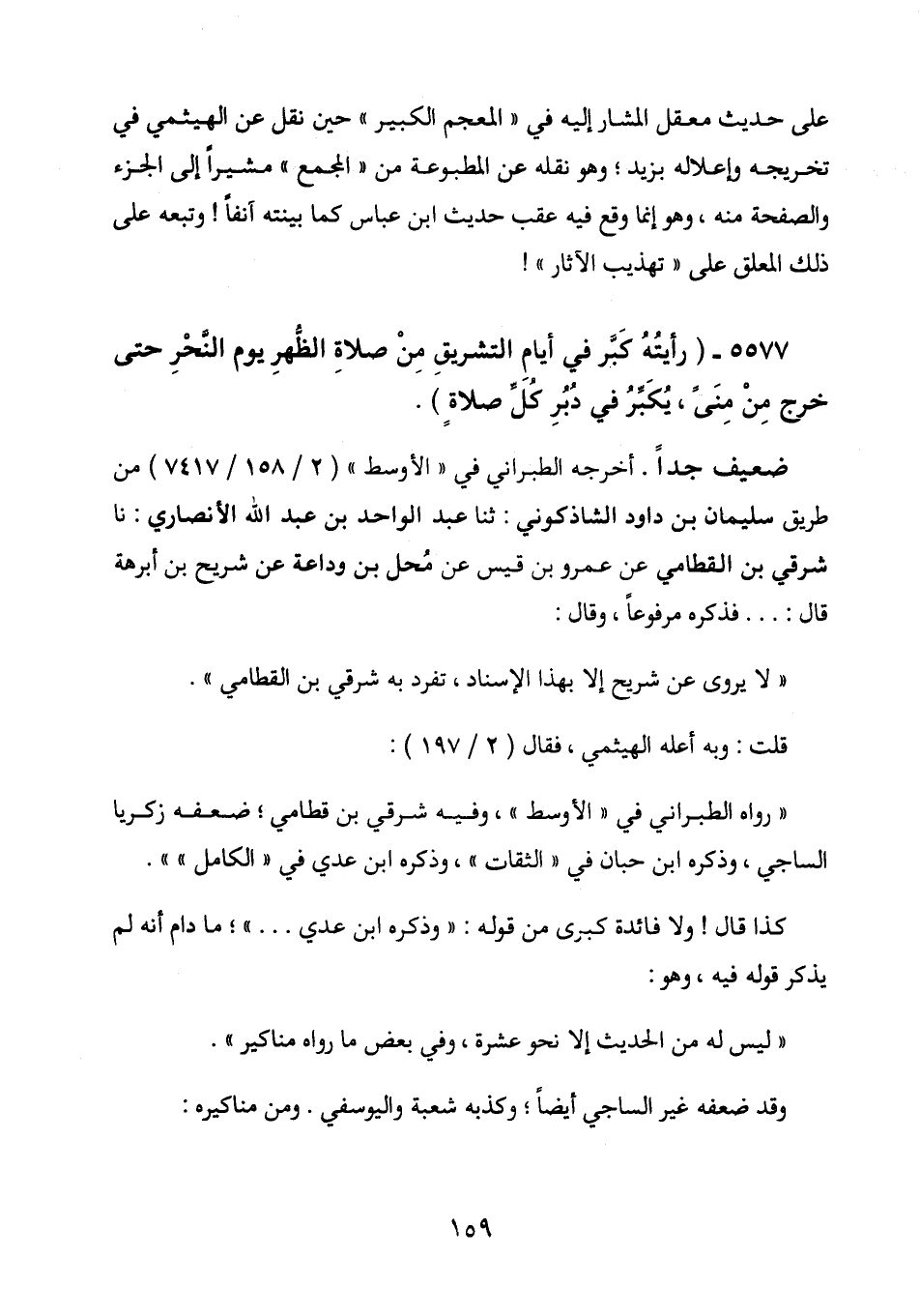5577 - (رأيتُهُ كَبَّر في أيامِ التشريقِ من صلاةِ الظهرِ يوم النحرِ حتى خرجِ مِنْ مِنَىً، يُكَبِّرُ في دُبُرِ كُلِّ صلاةٍ) .