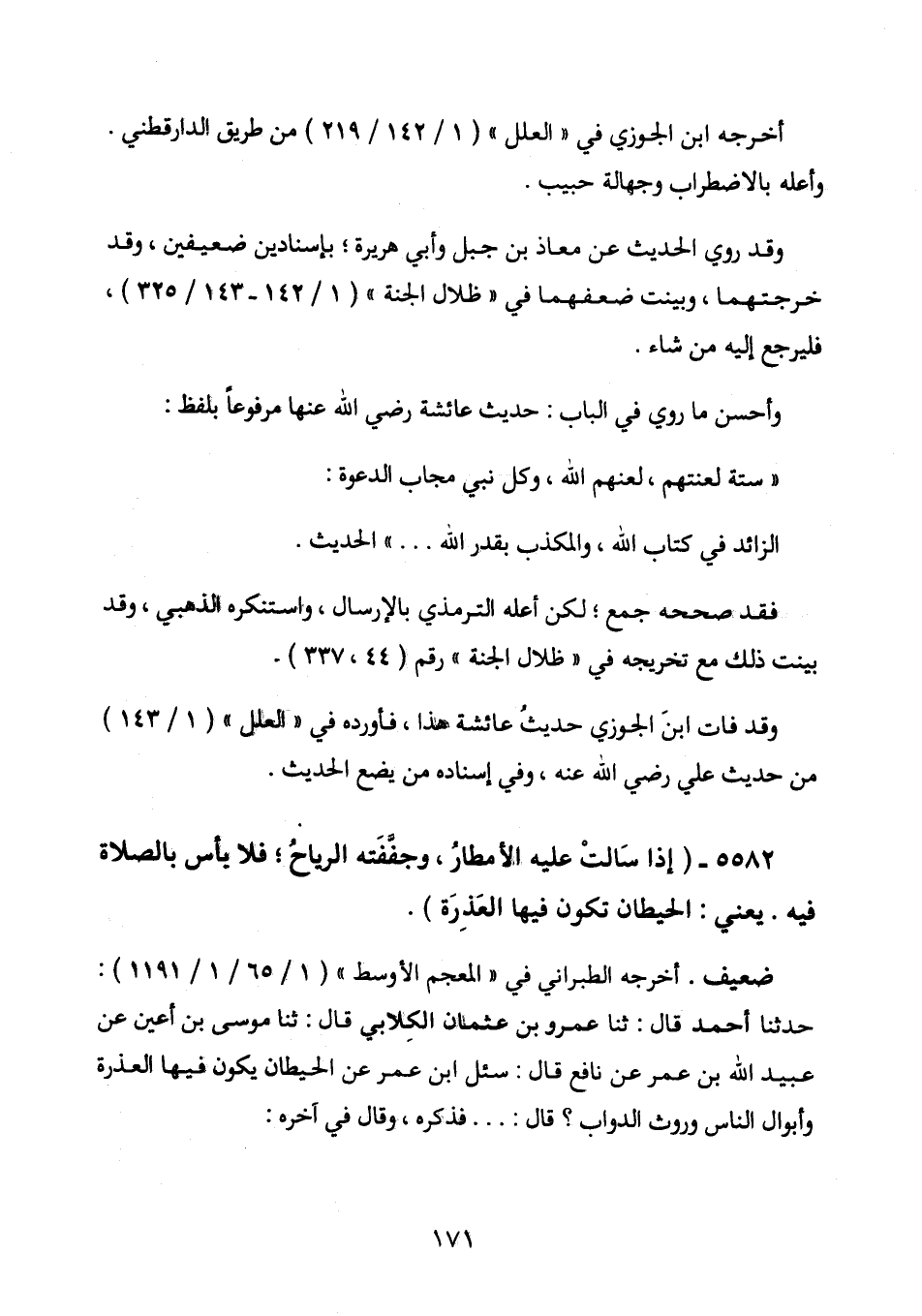 5582 - (إِذَا سَالَتْ عَلَيْهِ الْأَمْطَارُ، وَجَفَّفَتْهُ الرِّيَاحُ، فَلَا بَأْسَ بِالصَّلَاةِ فِيْهِ. يَعْنِيْ: الْحِيْطَأن تَكُوْنُ فِيْهَا الْعَذِرَةُ)