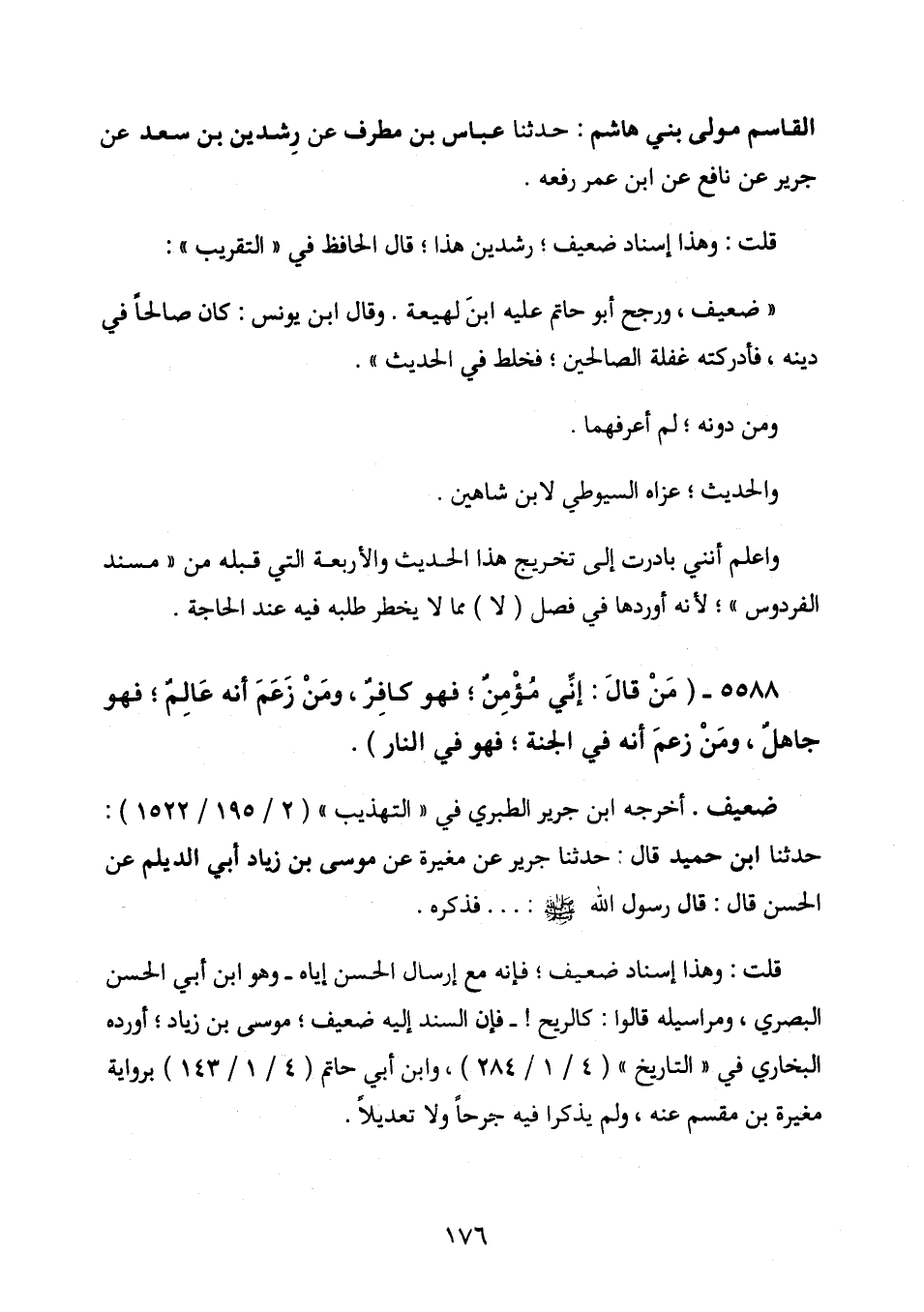 5588 - (مَنْ قَالَ: إِنِّيْ مُؤْمِنٌ؛ فَهُوَ كَافِرٌ، وَمَنْ زَعَمَ أَنَّهُ عَالِمٌ؛ فَهُوَ جَاهِلٌ، وَمَنْ زَعَمَ أَنَّهُ فِي الْجَنَّةِ؛ فَهُوَ فِي النَّارِ)
