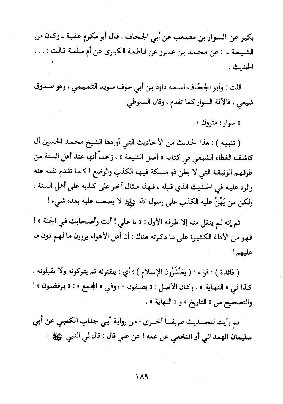 ثم إنه لم ينقل منه إلا طرفه الأول: " يا علي! أنت وأصحابك في الجنة "! فهو من الأدلة الكثيرة على ما ذكرته هناك: أن أهل الأهواء يروون ما لهم دون ما عليهم!