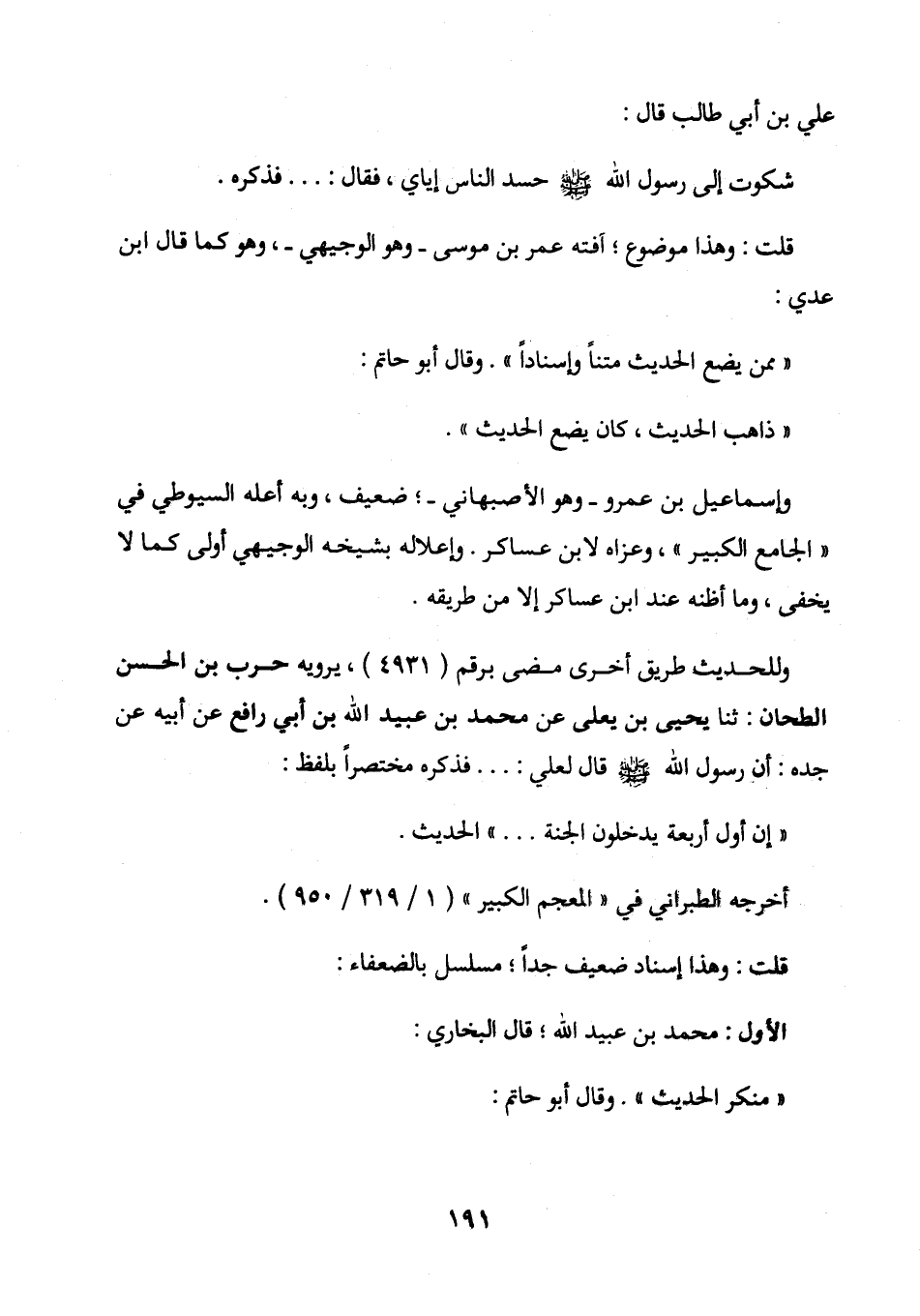 وإسماعيل بن عمرو - وهو الأصبهاني -؛ ضعيف، وبه أعله السيوطي في ((الجامع الكبير)) . وعزاه لابن عساكر. وإعلاله بشيخه الوجيهي أولى كما لا يخفى، وما أظنه عند ابن عساكر إلا من طريقه.