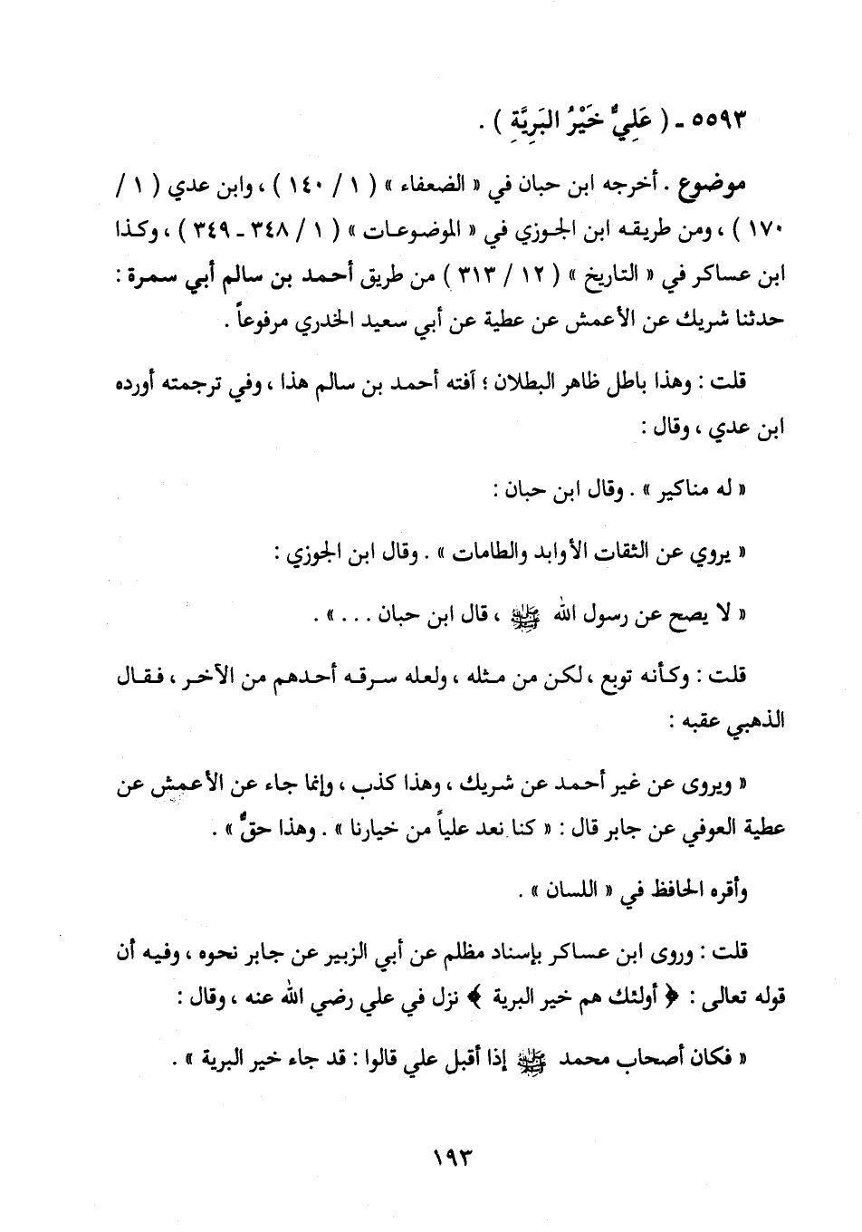 5593 - (عَلِيٌّ خَيْرُ البَرِيَّةِ) .