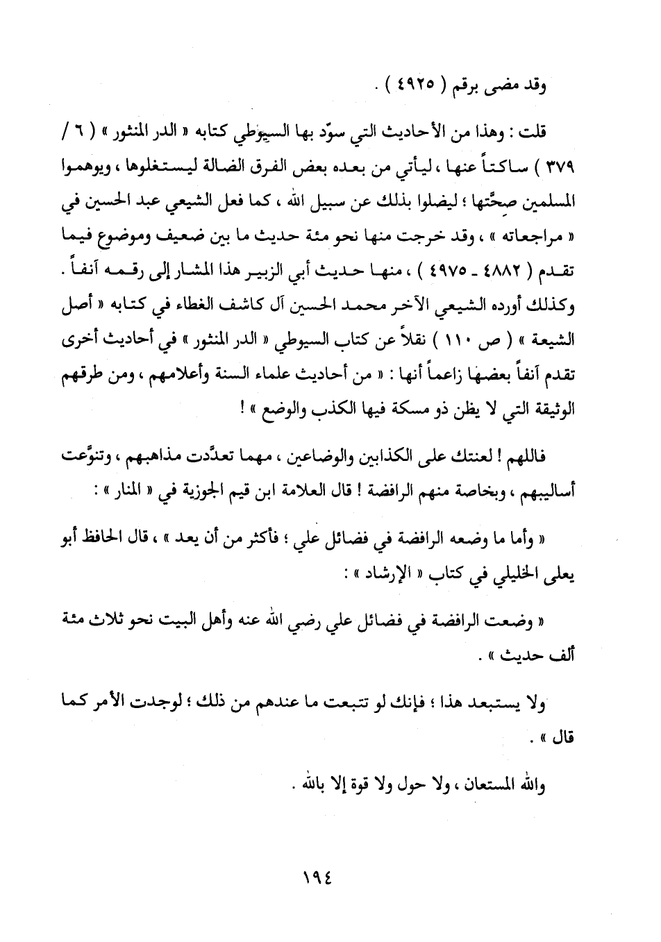 فاللهم لعنتك على الكذابين والوضاعين، مهما تعددت مذاهبهم، وتنوَّعت أساليبهم، وبخاصة منهم الرافضة! قال العلامة ابن قيم الجوزية في ((المنار)) :