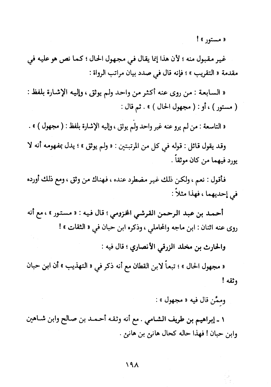 (مستور) ، أو (مجهول الحال)) ) . ثم قال:
