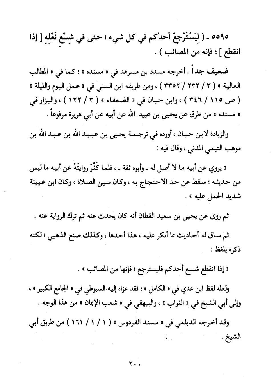 5595 - (ليسترجع أحدكم في كل شيء، حتى في شسع نعله [إذا انقطع] ، فإنه من المصائب) .