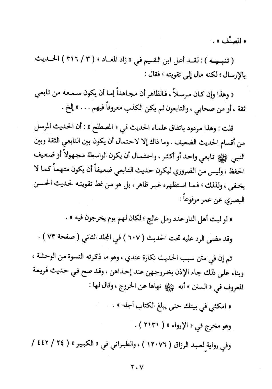 قلت: وهذا مردود باتفاق علماء الحديث في (المصطلح) : أن الحديث المرسل من أقسام الحديث الضعيف. وما ذاك إلا لاحتمال أن يكون بين التابعي الثقة وبين النبي - صلى الله عليه وسلم - تابعي واحد أو أكثر، واحتمال أن يكون الواسطة مجهولاً أو ضعيف الحفظ، وليس من الضروري ليكون حديث التابعي ضعيفاً أن يكون متهماً كما لا يخفى، ولذلك، فما استظهره غير ظاهر، بل هو من نمط تقويته لحديث الحسن البصري عن عمر مرفوعاً: