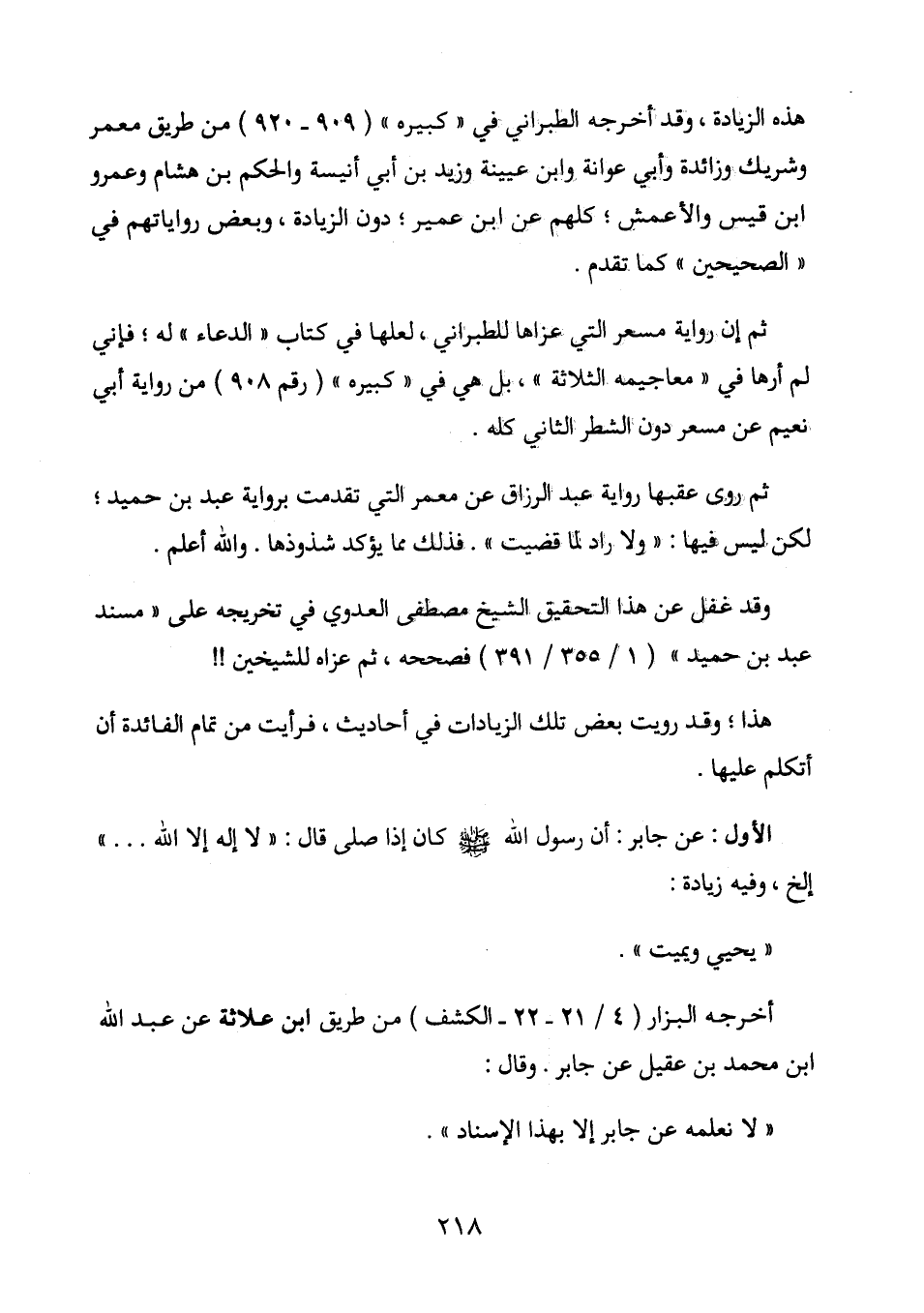 الأول: عن جابر: أن رسول الله صلى الله عليه وسلم كان إذا صلى قال: (لا إله إلا الله. . .) إلخ، وفيه زيادة: