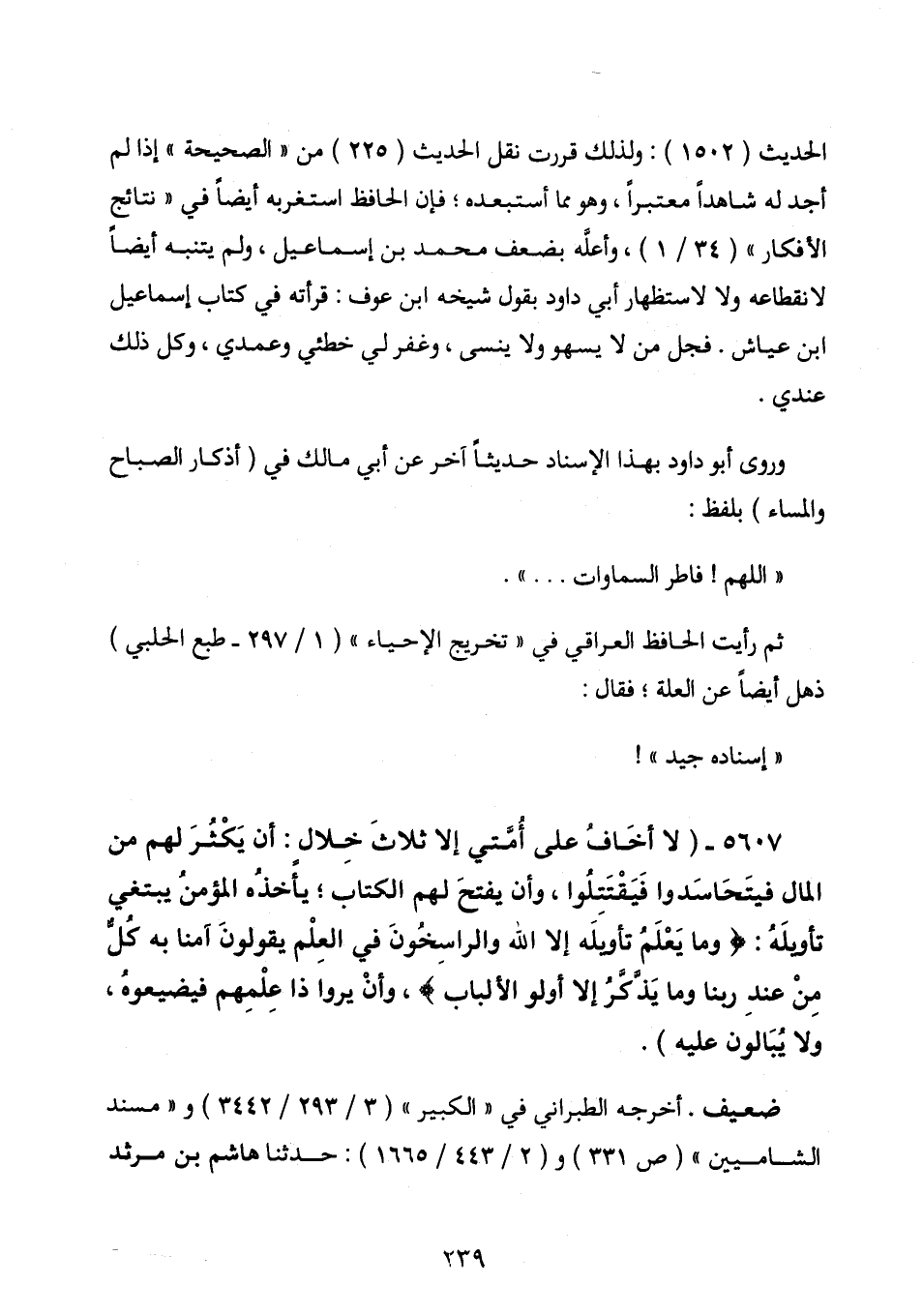 الحديث (1502) : ولذلك قررت نقل الحديث (225) من " الصحيحه " إذا لم أجد له شاهدا معتبرا، وهو مما أستبعده، فإن الحافظ استغربه أيضا فى " نتائج الأفكار " (34 / 1) ، وأعله بضعف محمد ابن إسماعيل، ولم يتنبه أيضا لانقطاعه ولا لإستظهار أبى داود بقول شيخه ابن عوف: قرأته فى كتاب إسماعيل ابن عياش. فجل من لا يسهو ولاينسى، وغفر لى خطئى وعمدى، وكل ذلك عندى.
