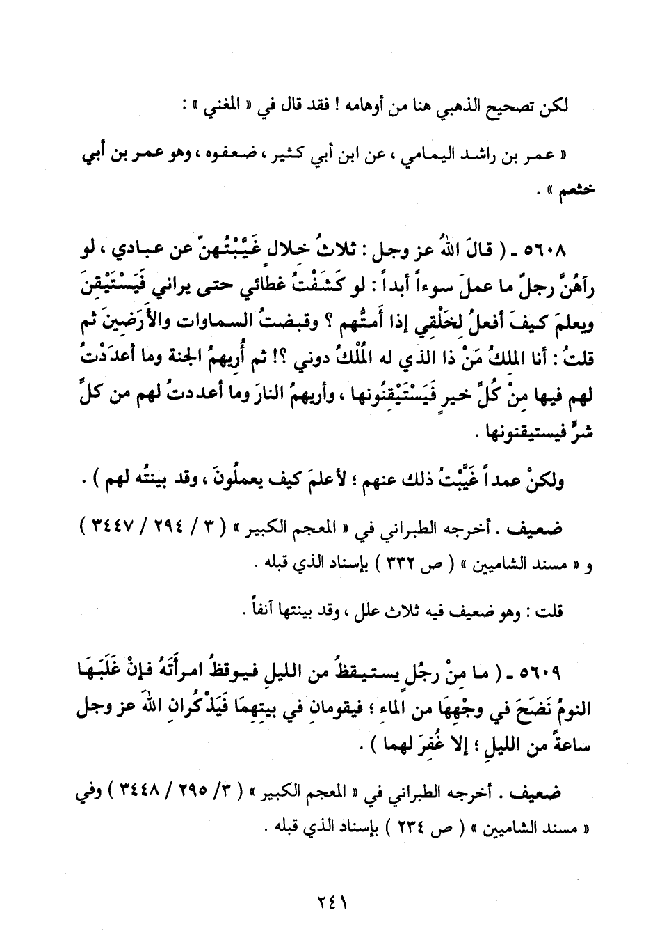 5608 - (قالَ اللهُ عزَّ وجلَّ: ثلاثُ خلالٍ غيّبتُهنَّ عن عبادي، لو رآهنَّ رجلٌ ما