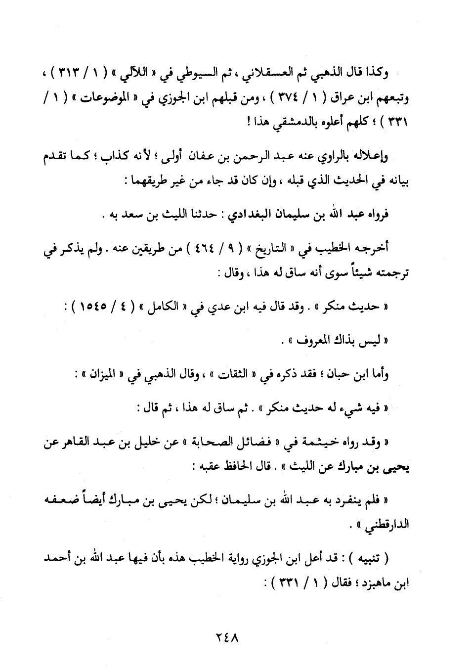وكذا قال الذهبي ثم العسقلاني، ثم السيوطي في اللآلئ (1 / 313) ، وتبعهم ابن عراق (1 / 374) ومن قبلهم ابن الجوزي في ((الموضوعات)) (1 / 331) ؛ كلهم أعلوه بابن الدمشقي هذا!