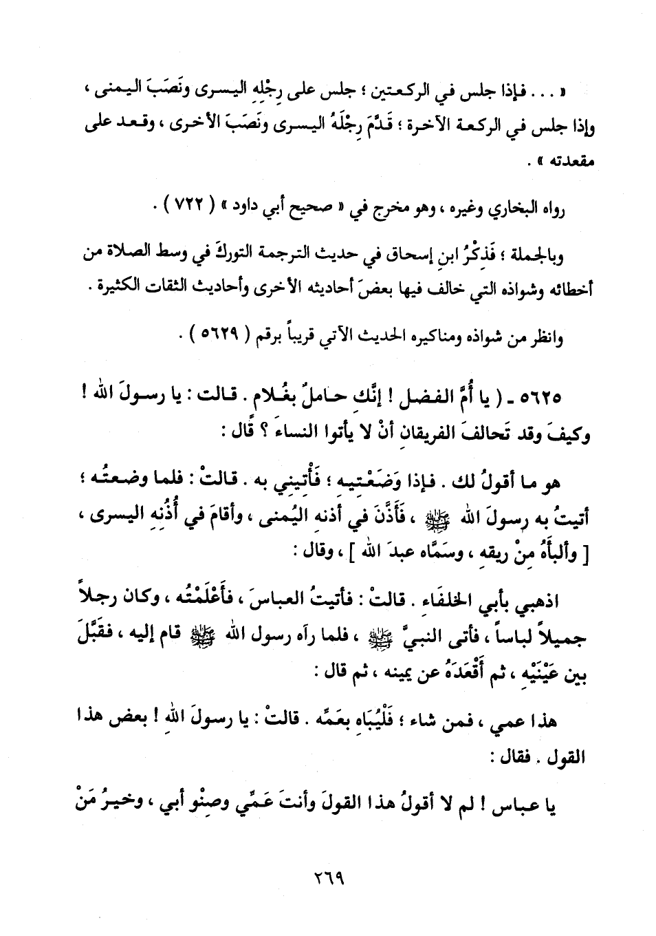 5625 - (يا أُمَّ الفضل! إنَّكِ حاملٌ بغُلامٍ. قالت: يا رسولَ الله! وكيفَ وقد تَحالفَ الفريقانِ أنْ لا يأتوا النساءَ؟ قال: