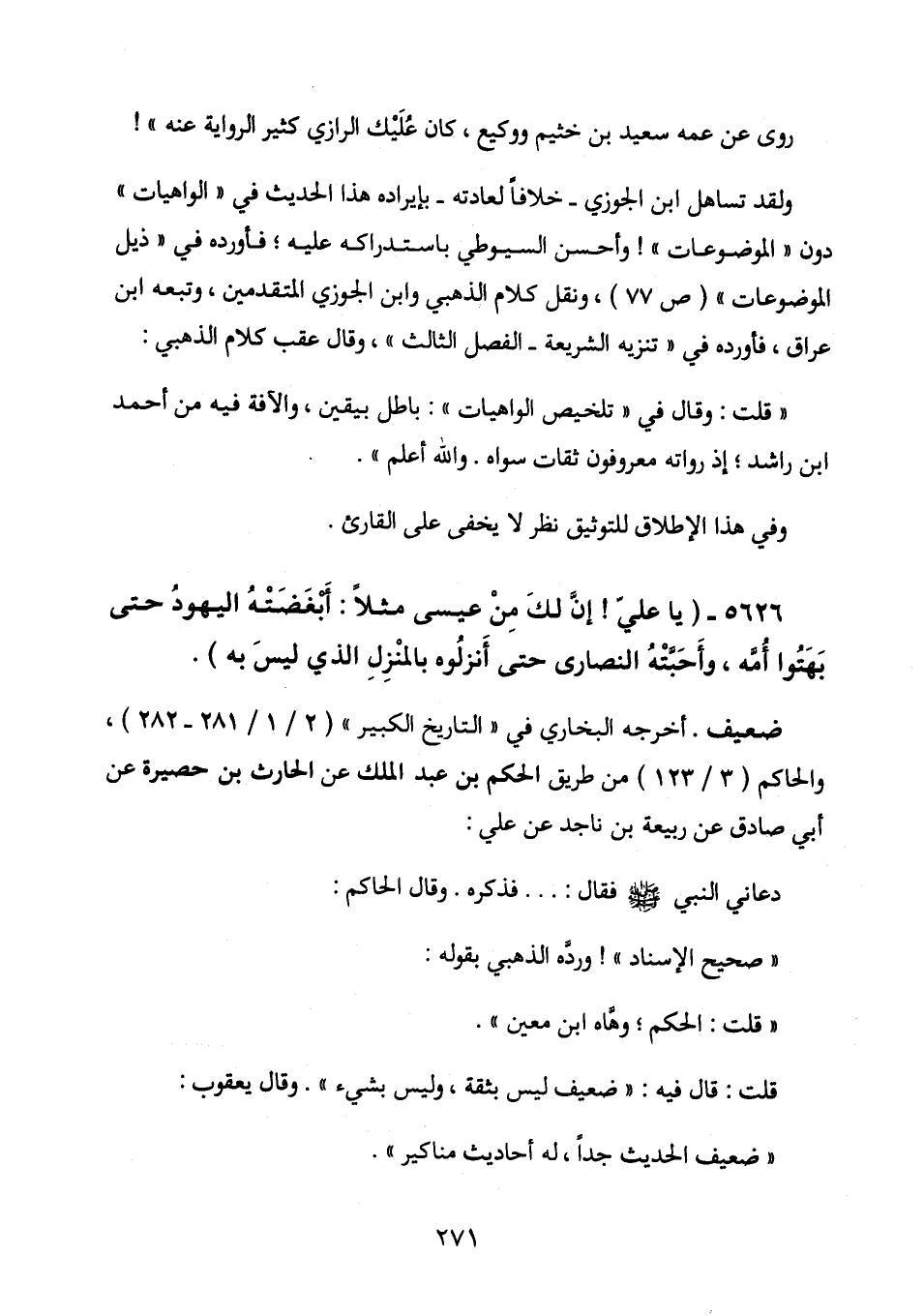 الموضوعات " (ص 77) ، ونقل كلام الذهبي وابن الجوزي المتقدمين، وتبعه ابن