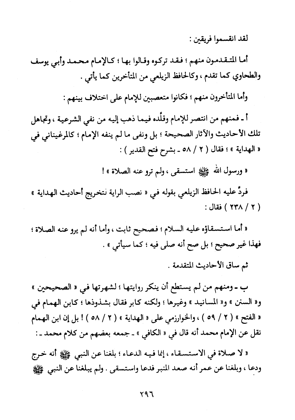 أما المتقدمون منهم؛ فقد تركوه وقالوا بها؛ كالإمام محمد وأبي يوسف