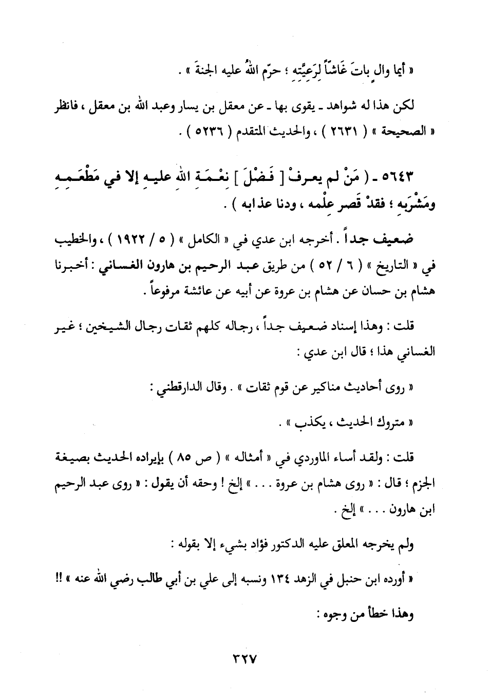 قلت: ولقد أساء الماوردي في أمثاله (ص 85) بإيراده الحديث بصيغة الجزم، فقال: (روى هشام بن عروة. . .) إلخ! وحقه أن يقول: (روى عبد الرحيم ابن هارون. . .) إلخ.