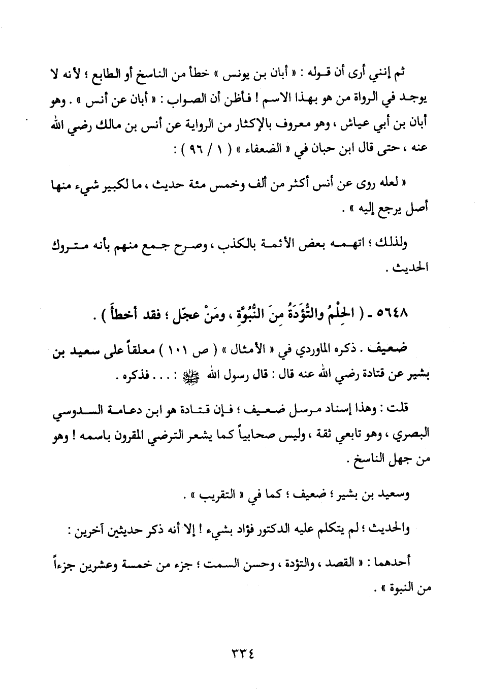 ثم إنني أرى أن قوله: " أبان بن يونس " خطأ من الناسخ أو الطابع، لأنه لا يوجد في الرواة من هو بهذا الاسم! فأظن أن الصواب: " أبان عن أنس ". وهو أبان بن أبي عياش، وهو معروف بالإكثارمن الرواية عن أنس بن مالك رضي الله عنه، حتى قال ابن حبان في " الضعفاء " (1 / 96) :